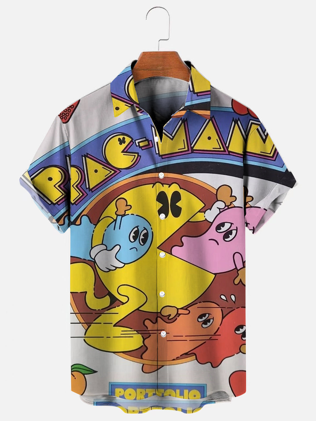 80s Pop Culture Retro Game Print Hawaiian Short Sleeve Shirt
