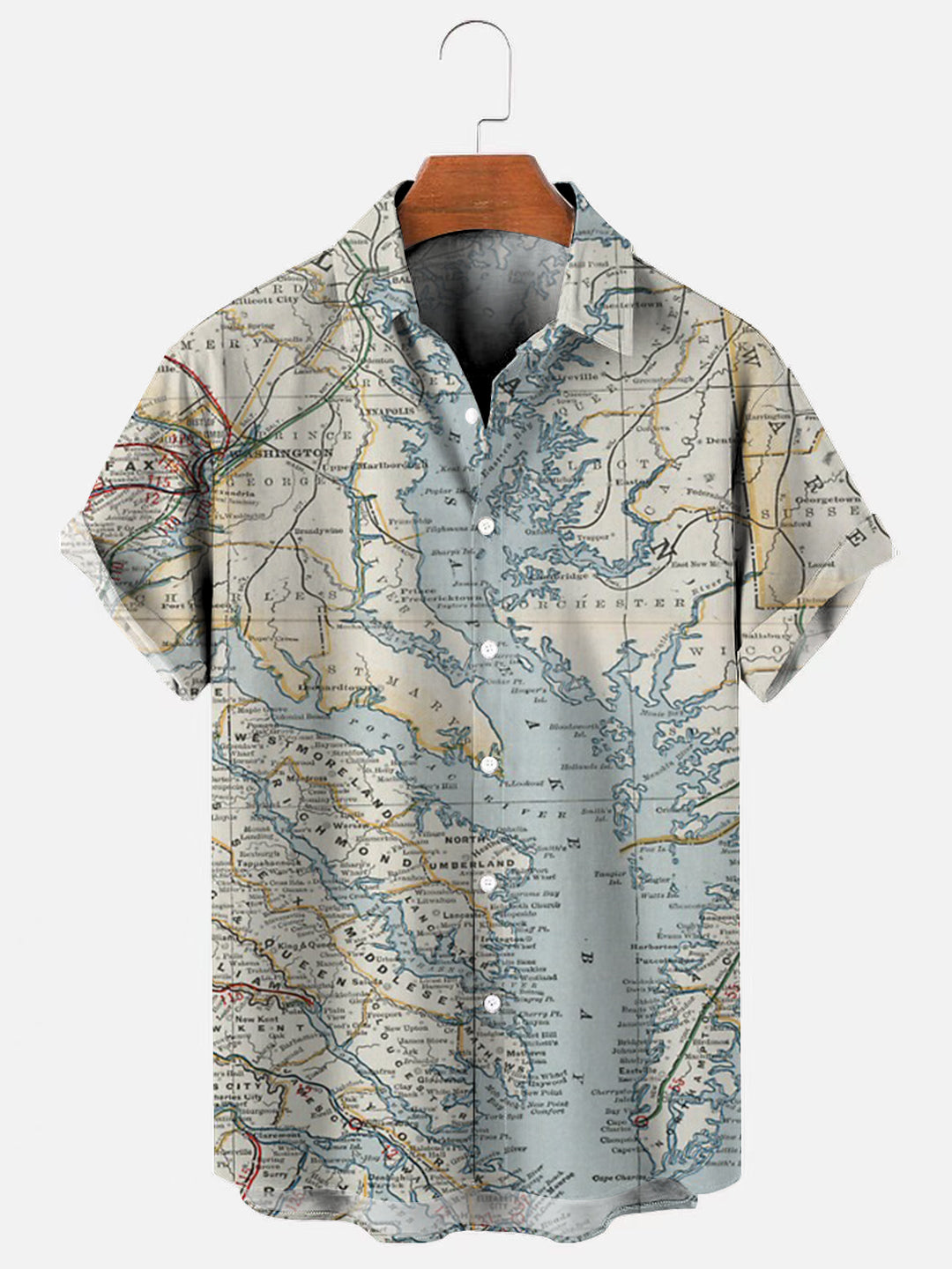 Chesapeake Bay Vintage Map Print Hawaiian Short Sleeve Shirt