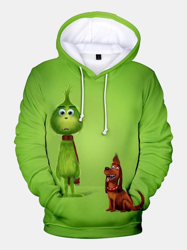 Christmas Grinch Fun Print Long Sleeve Hoodie