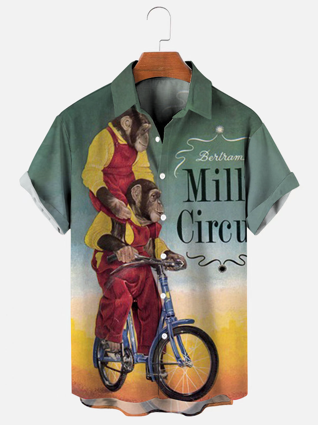 Circus Monkey Biking Retro Print Short Sleeve Shirt