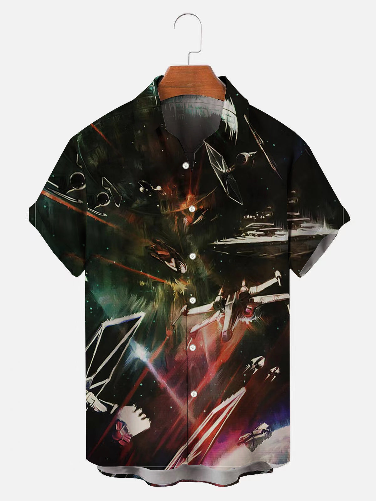 Classic Spaceship Wars Printing Short Sleeve Shirt
