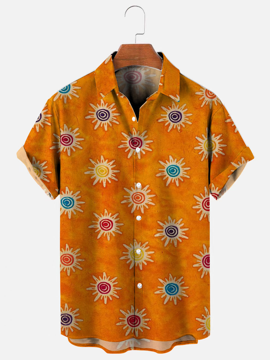 Colorful Sun Symbol Print Retro Short Sleeve Shirt