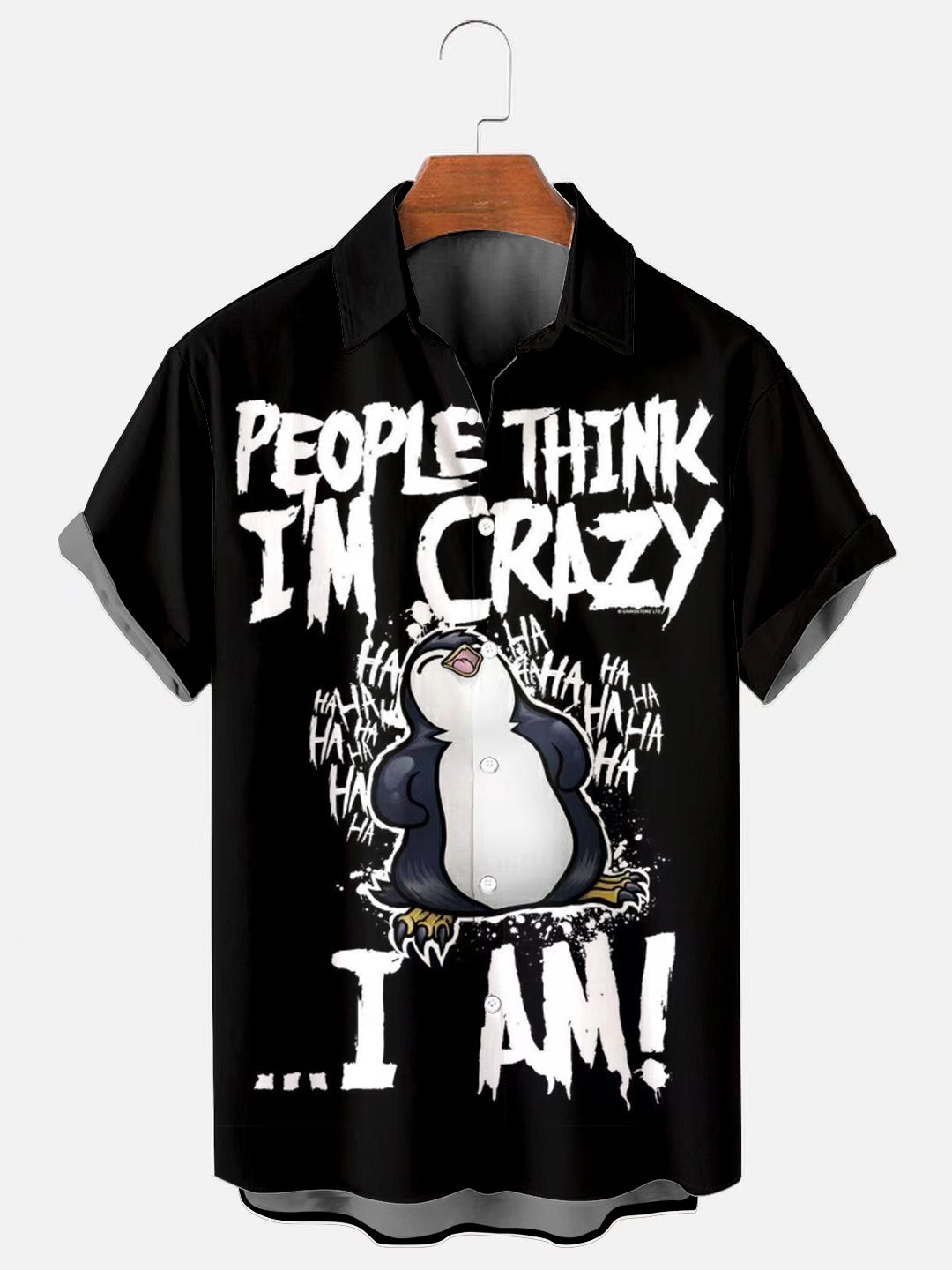 Crazy Penguin Print Casual Short Sleeve Shirt
