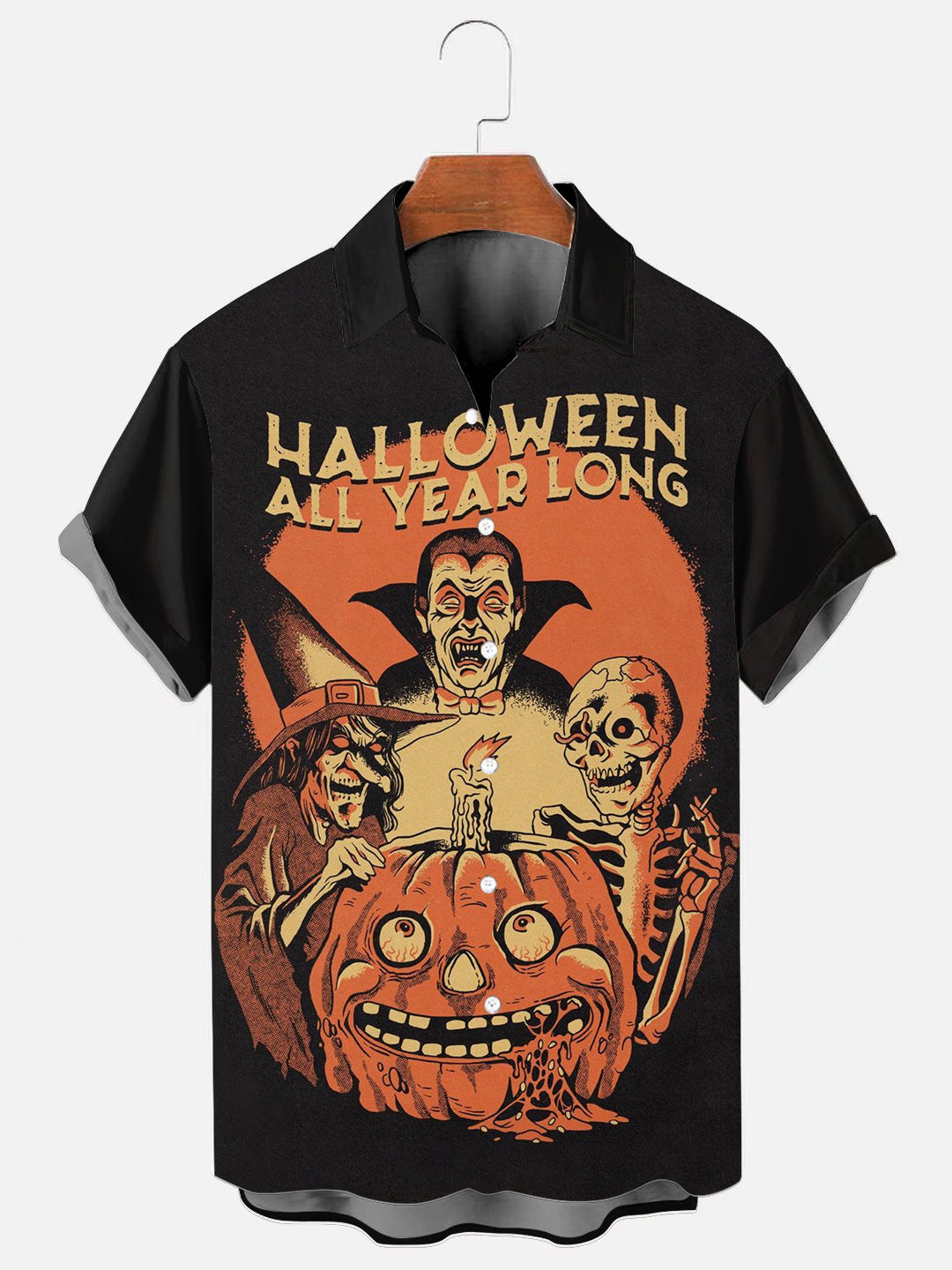 Everyday is Halloween Vampire Pumpkin Skull Print Casual Shirt