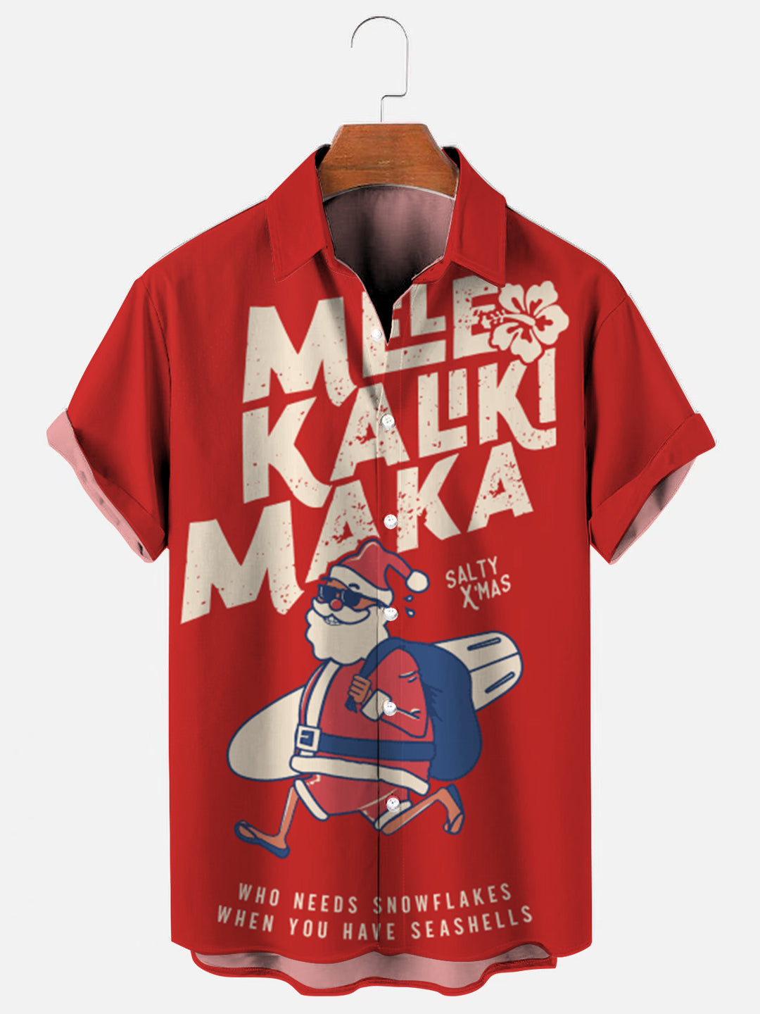 Funny Santa Print Hawaiian Short Sleeve Shirt