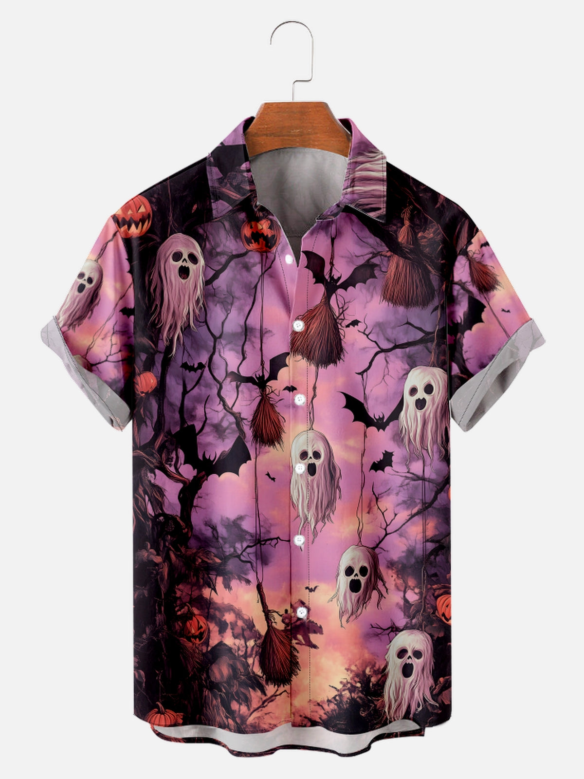 Halloween Ghost Bat Fun Print Holiday Short Sleeve Shirt