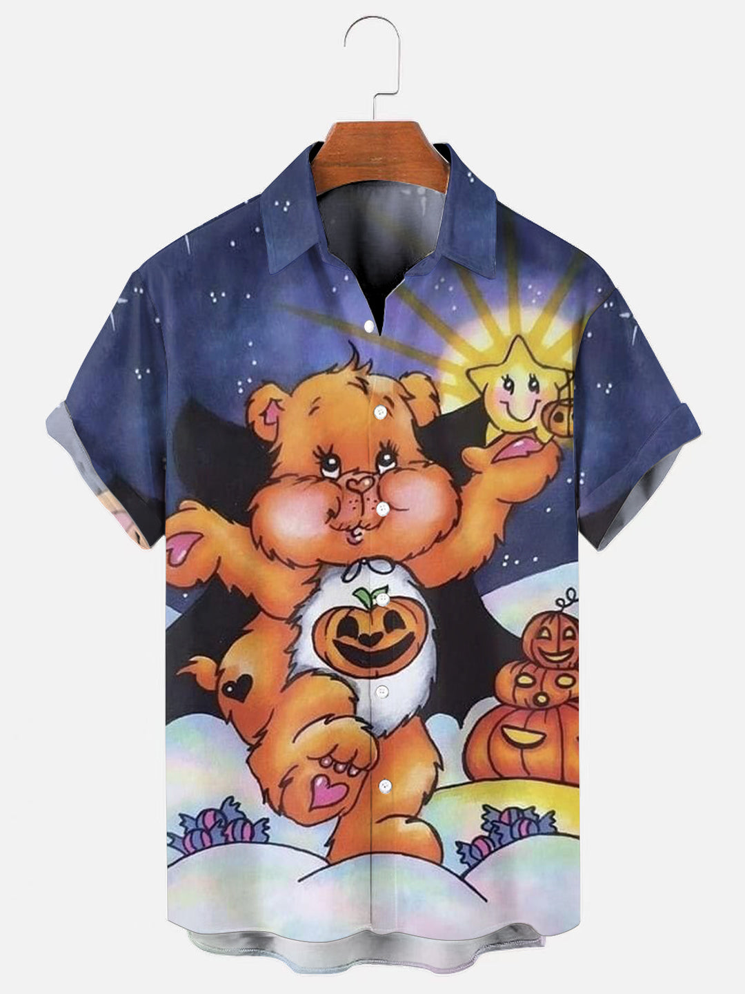 Halloween Heart Bear Print Holiday Short Sleeve Shirt