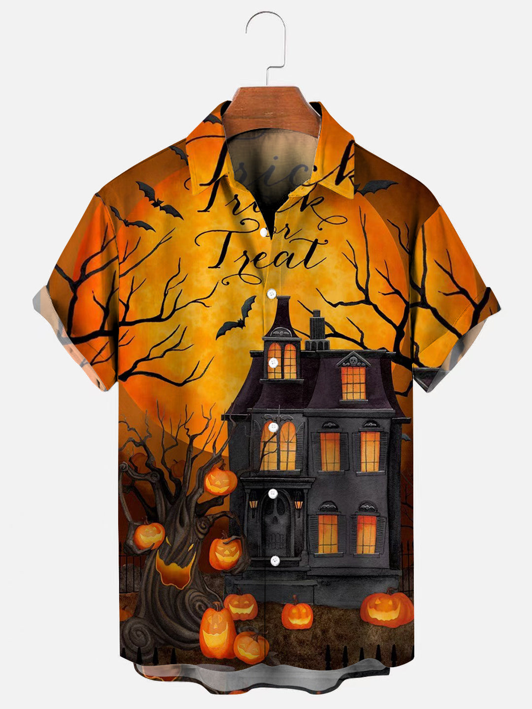 Haunted Nights Halloween Print Men's Short Sleeve Shirt