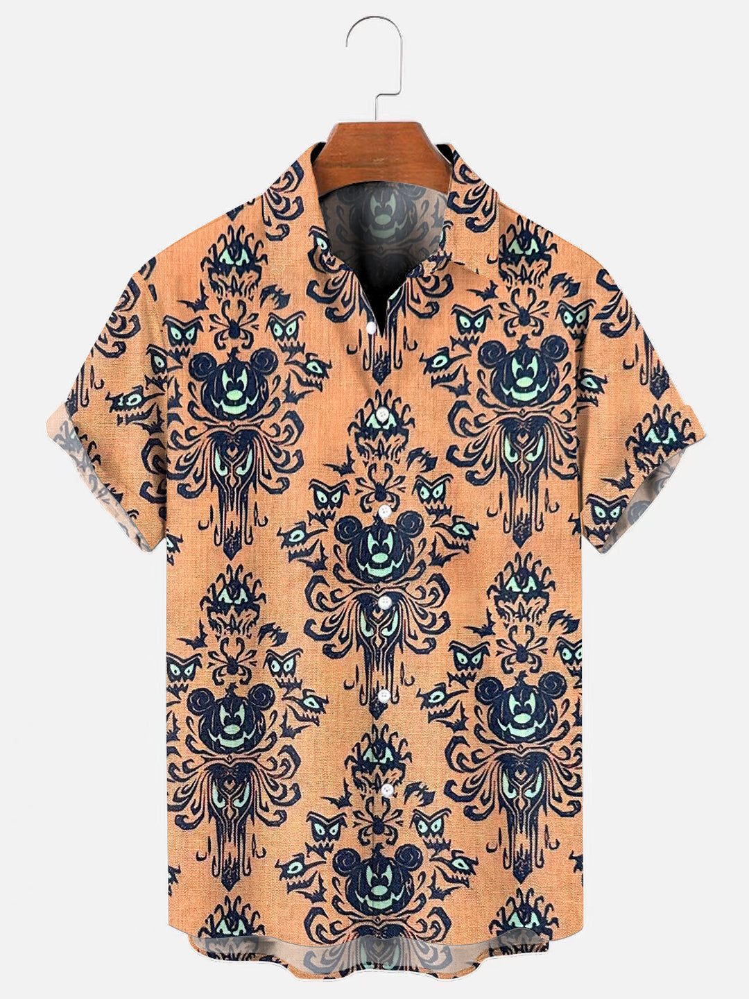 Haunted Pumpkin Print Hawaiian Short Sleeve Shirt