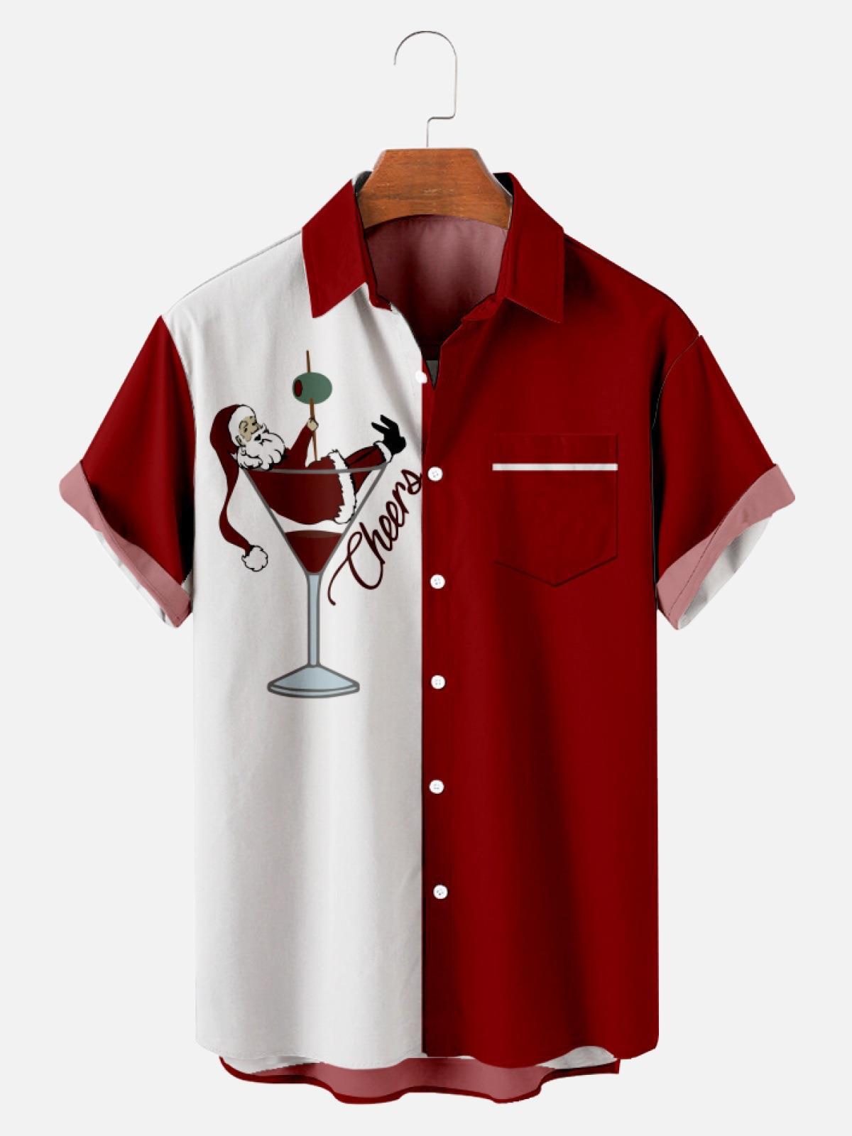 Men Cheers Santa Christmas Shirts Cocktail Vintage Xmas Short Sleeves