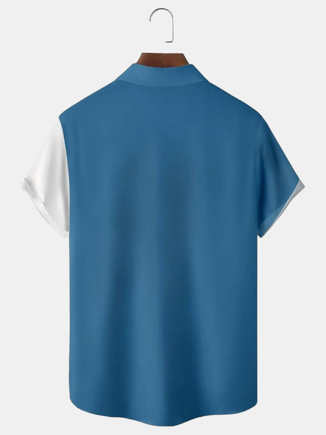 Men's Casual Music Symbol Patchwork Print Hawaiian Short Sleeve Shirt