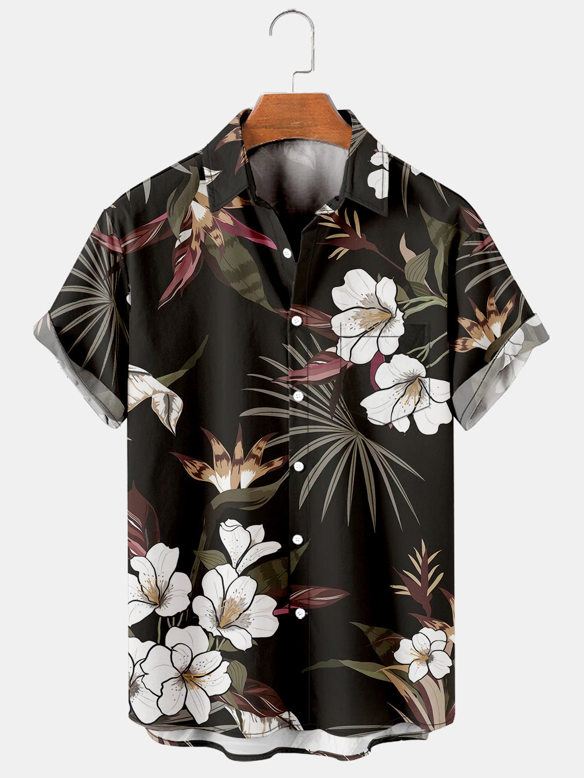 Mens Floral Print Casual Breathable Hawaiian Short Sleeve Shirt