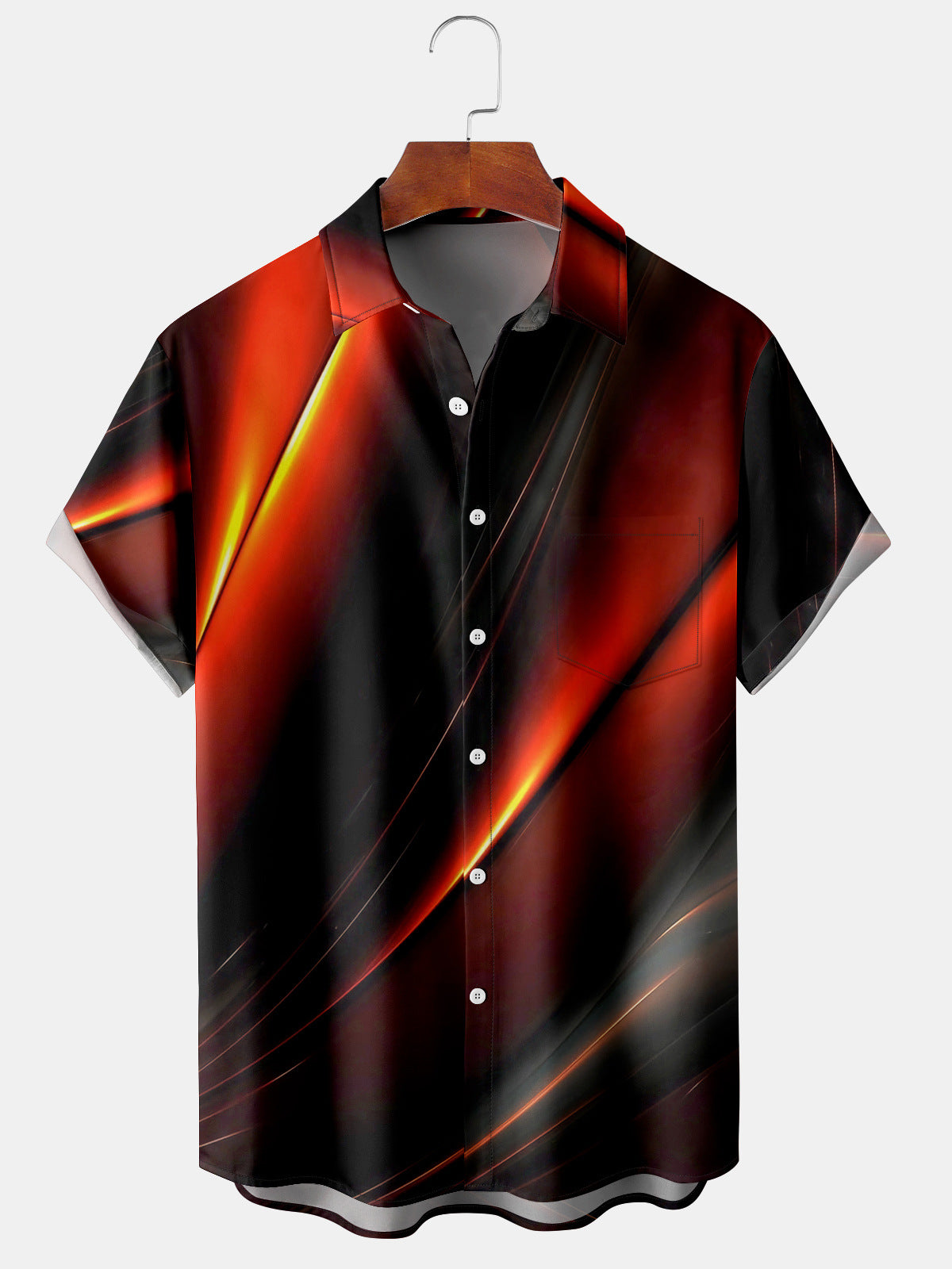 Mens 3D Abstract Print Casual Breathable Chest Pocket Short Sleeve Hawaiian Shirts