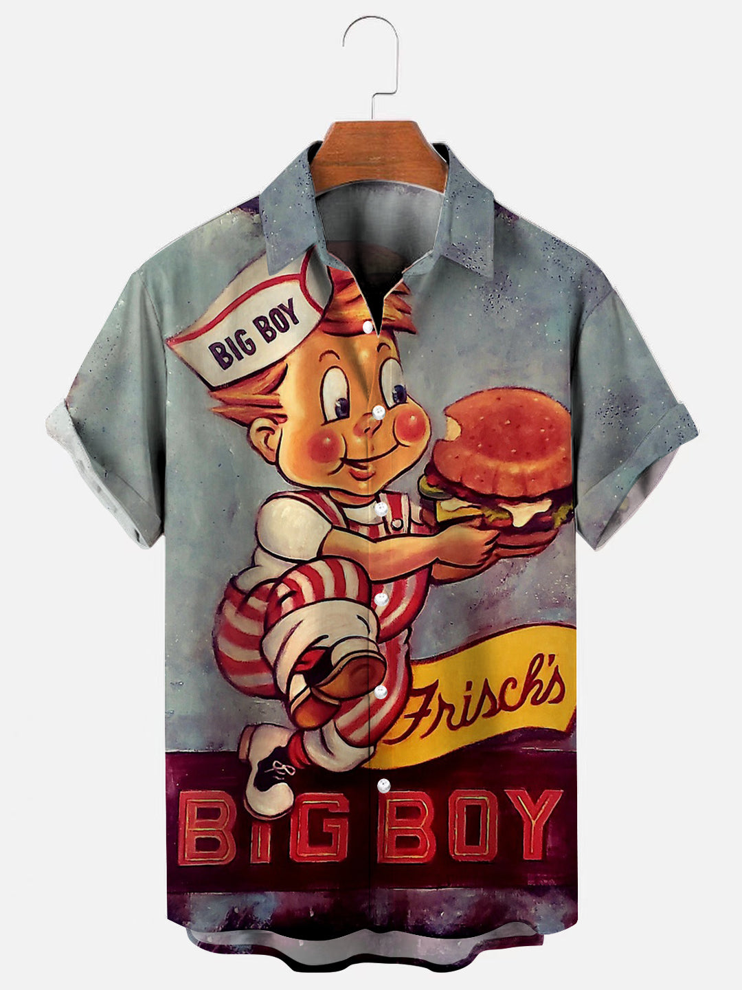 Men's 50's-60's Vintage Big Boy Print Hawaiian Short Sleeve Shirt
