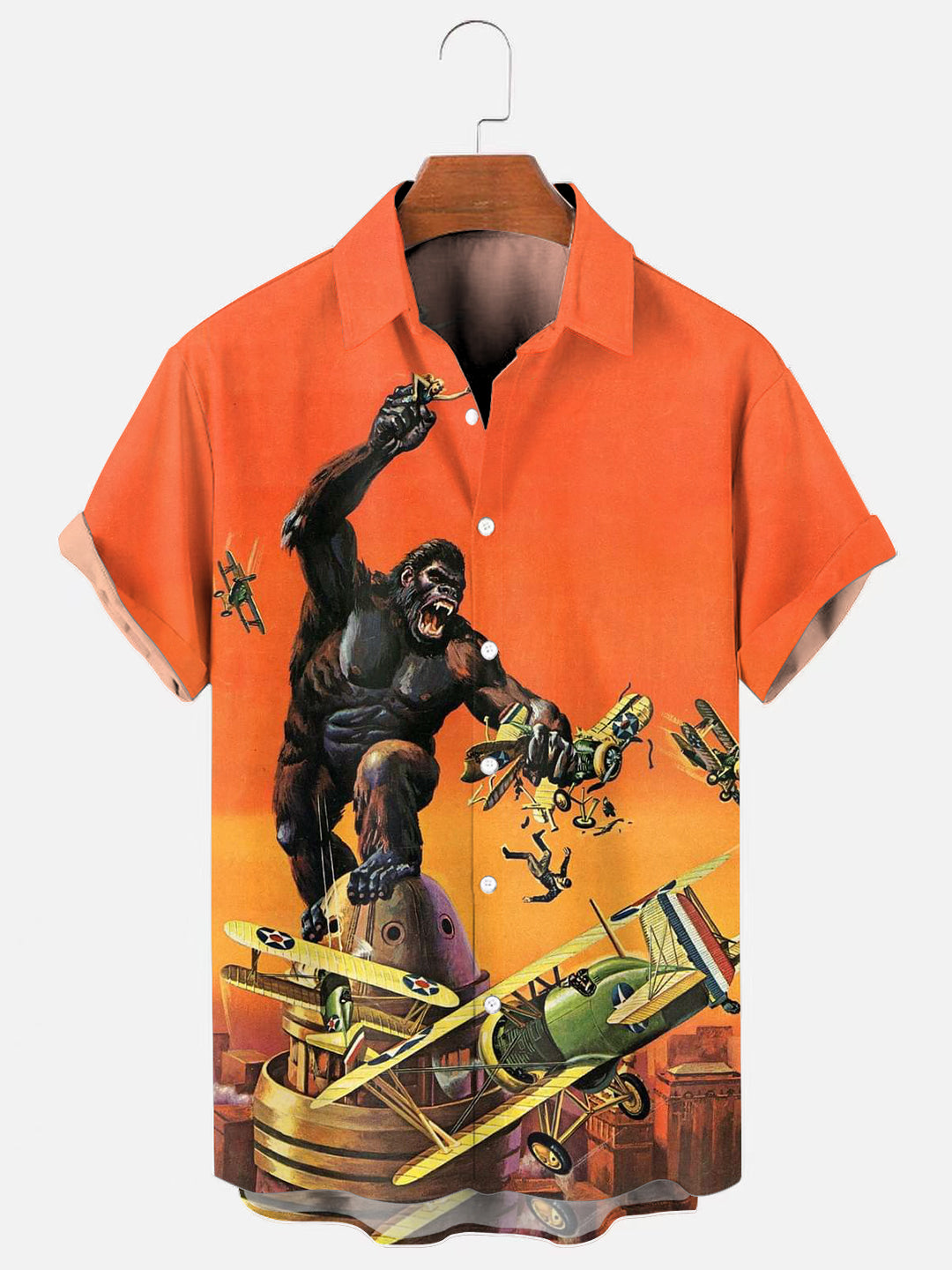 Men's 60s Retro Gorilla Poster Print Hawaiian Short Sleeve Shirt