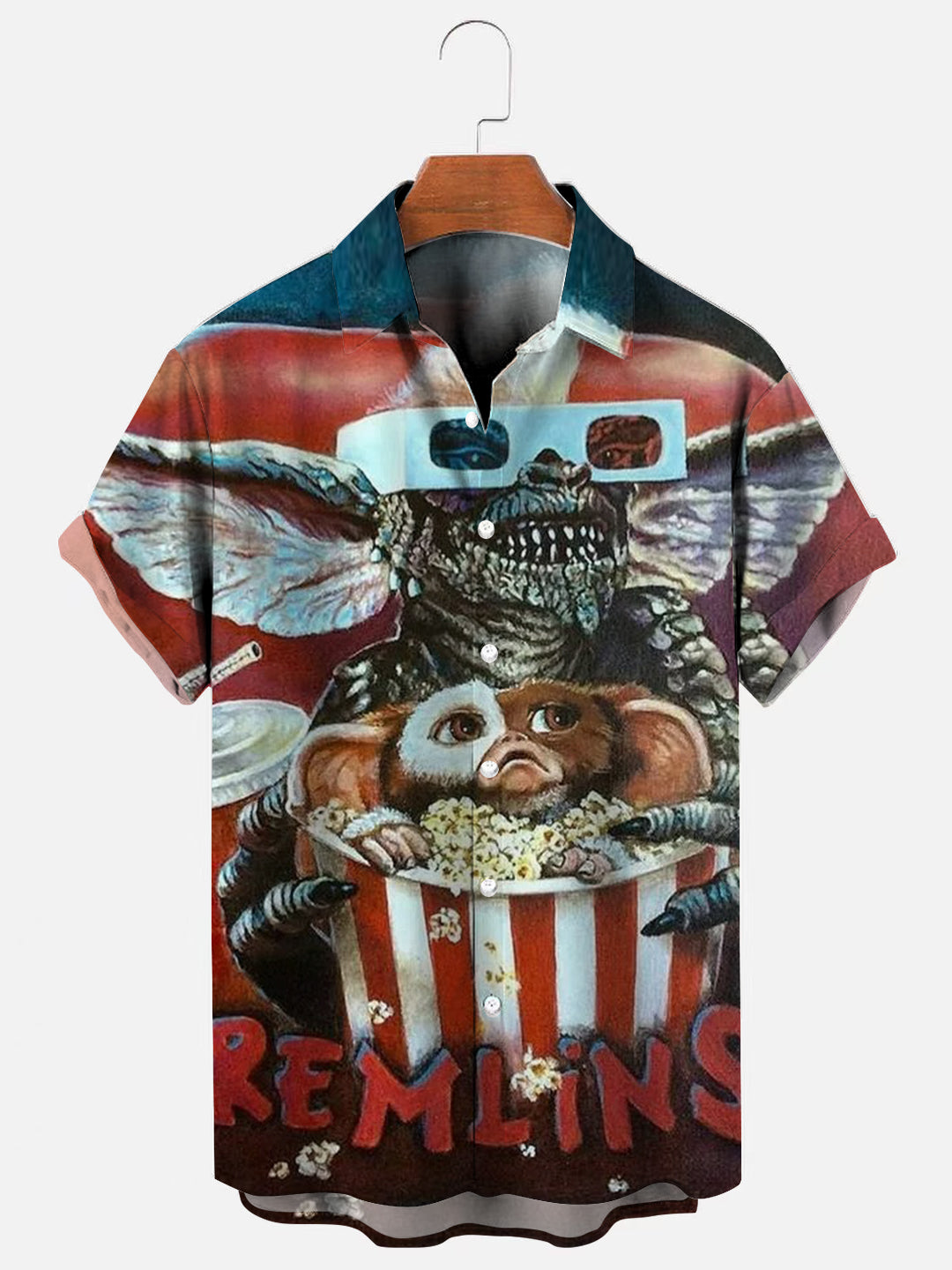 Men's 80's Retro Horror Movie Poster Print Hawaiian Short Sleeve Shirt