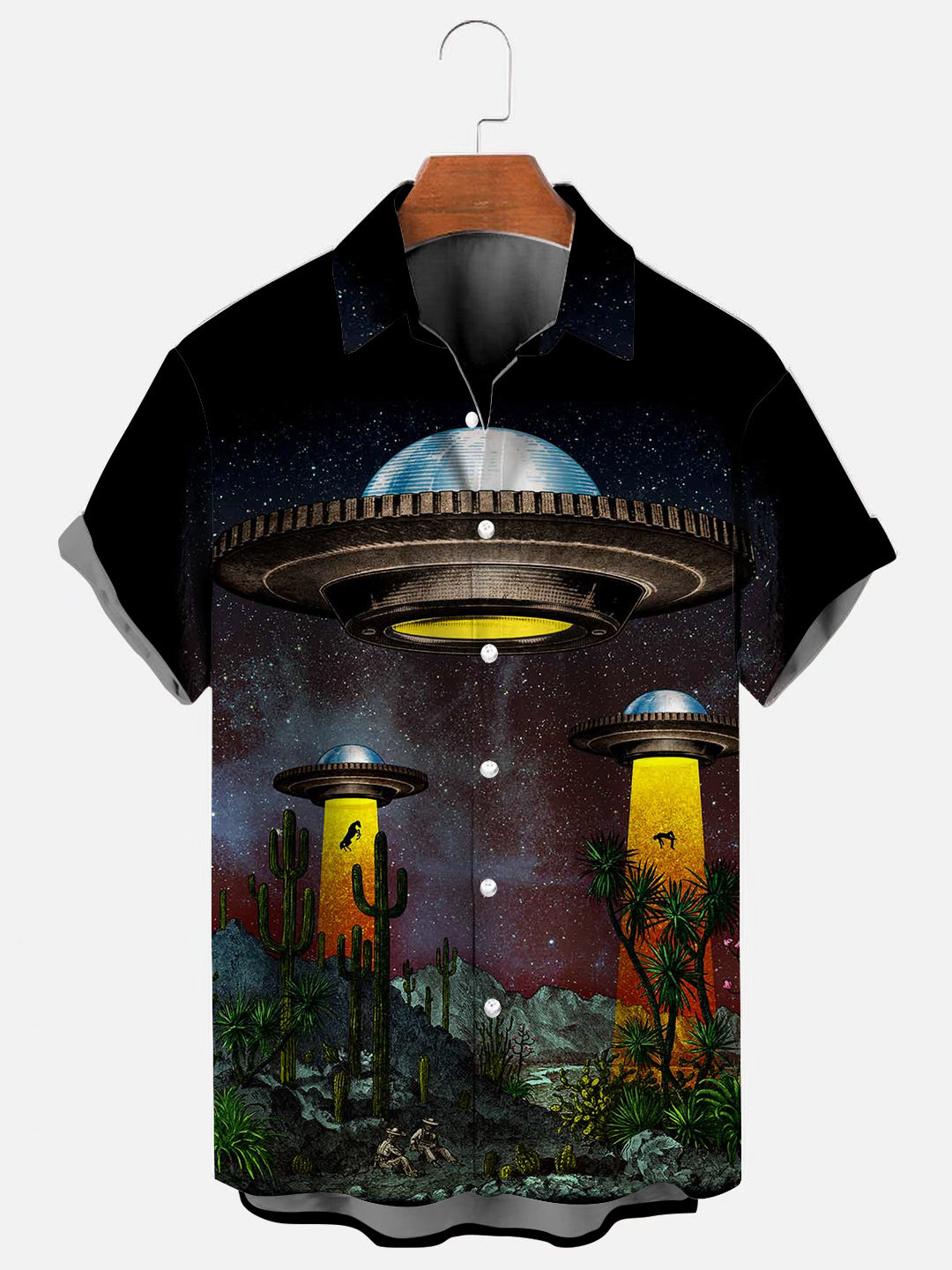 Men's Alien Spaceship Print Vintage Hawaiian Short Sleeve Shirt