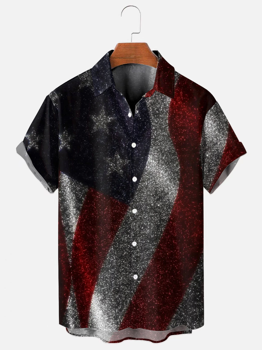 Men's American Flag Glitter Independence Day Short Sleeve Shirt