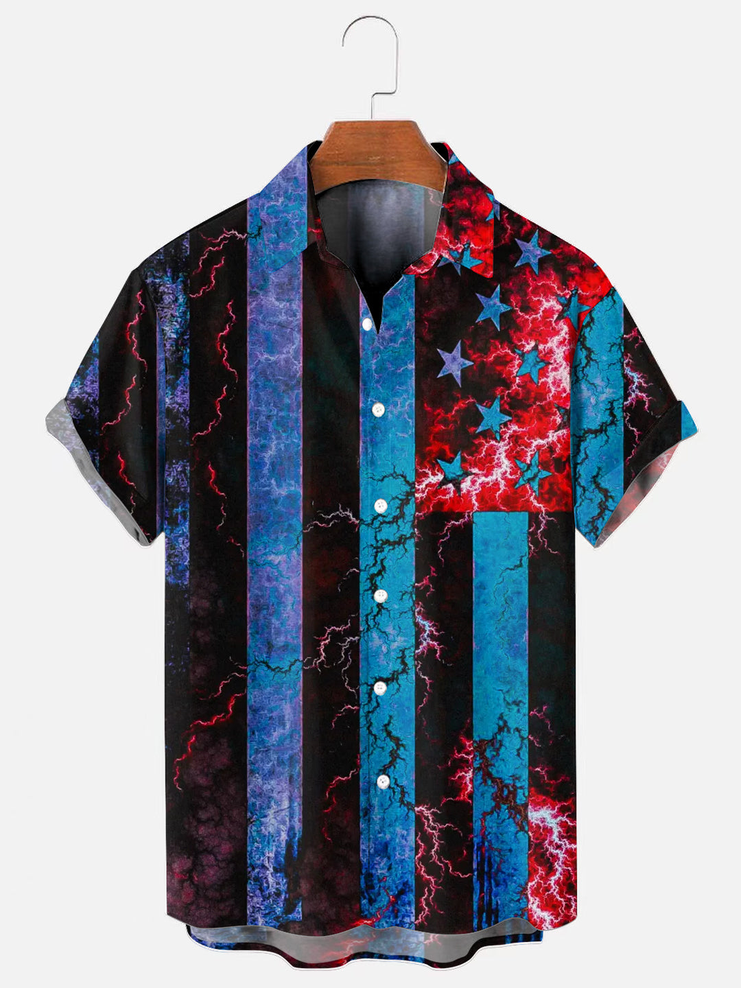 Men's American Flag Lightning Independence Day Short Sleeve Shirt