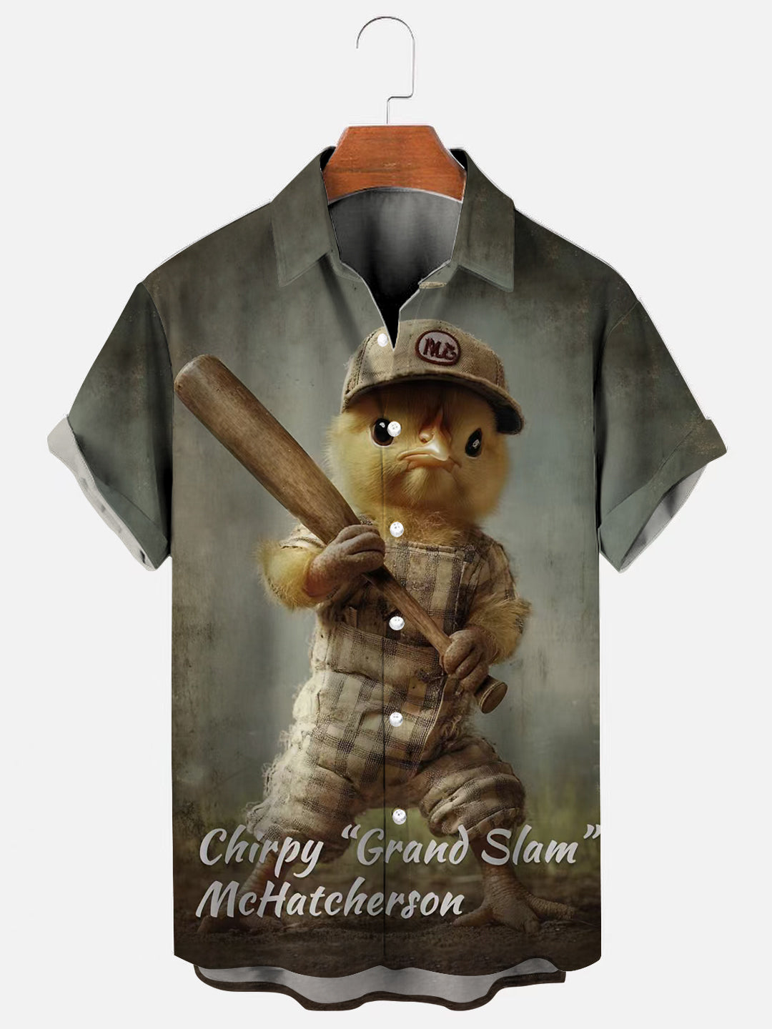 Men's Baseball Chick Fun Print Casual Short Sleeve Shirt