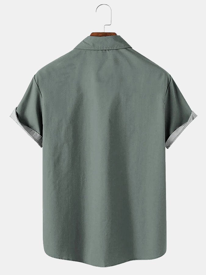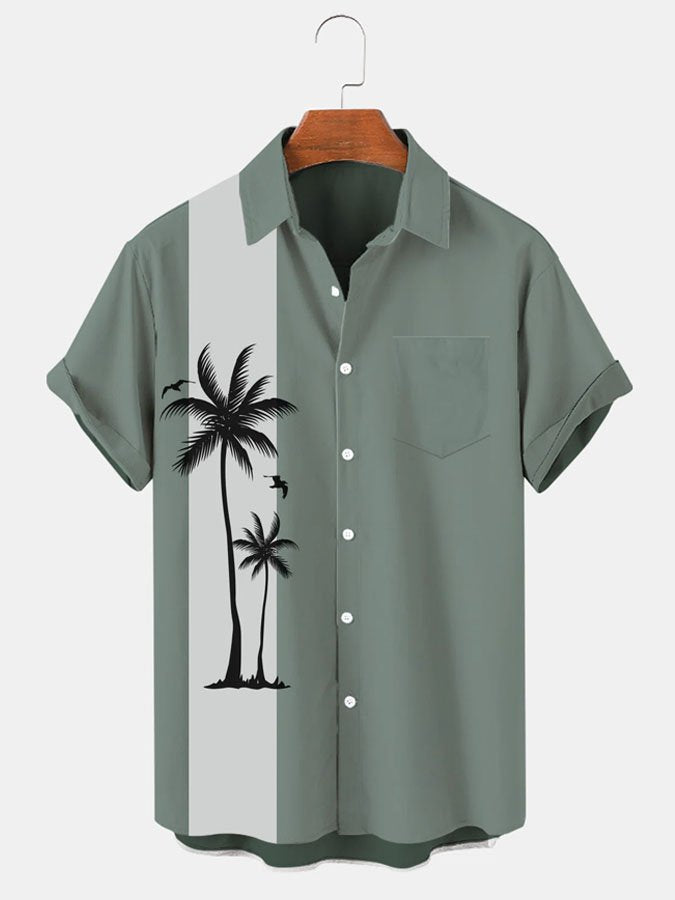 Mens Beach Print Casual Breathable Hawaiian Short Sleeve Shirt
