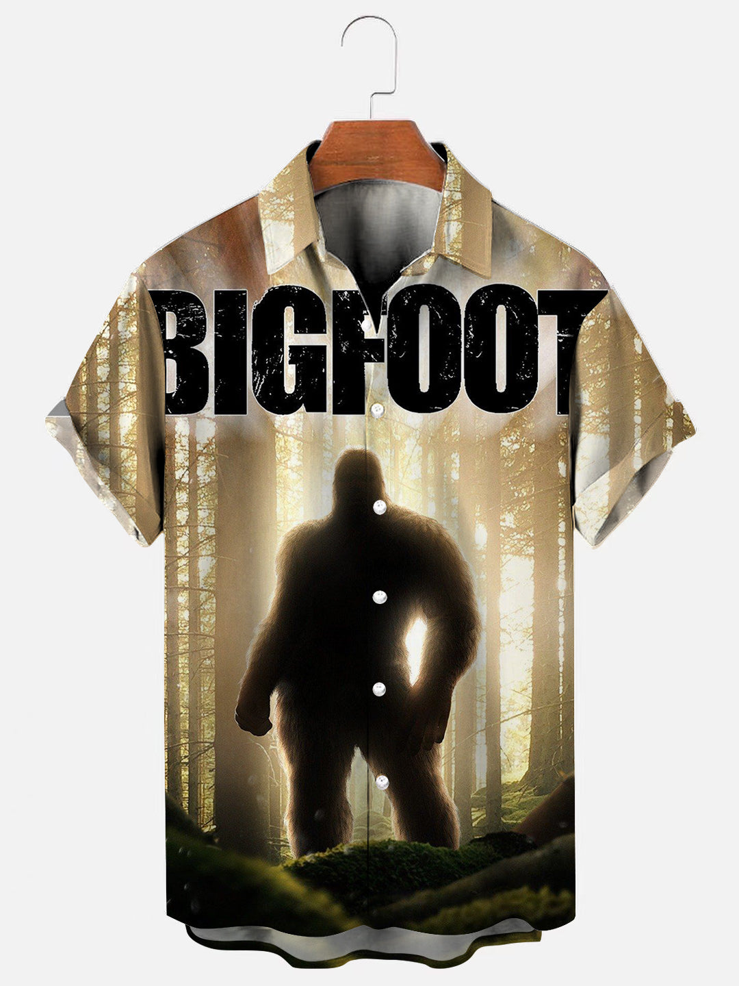 Men's Bigfoot Poster Print Hawaiian Casual Short Sleeve Shirt