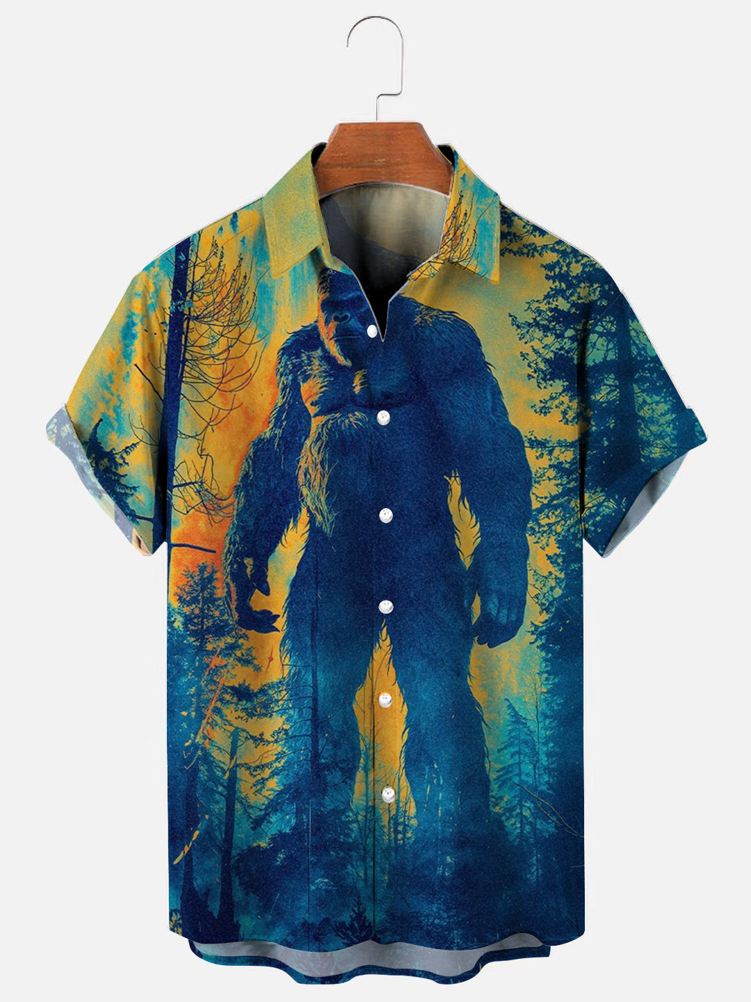 Men's Bigfoot Poster Print Hawaiian Short Sleeve Shirt