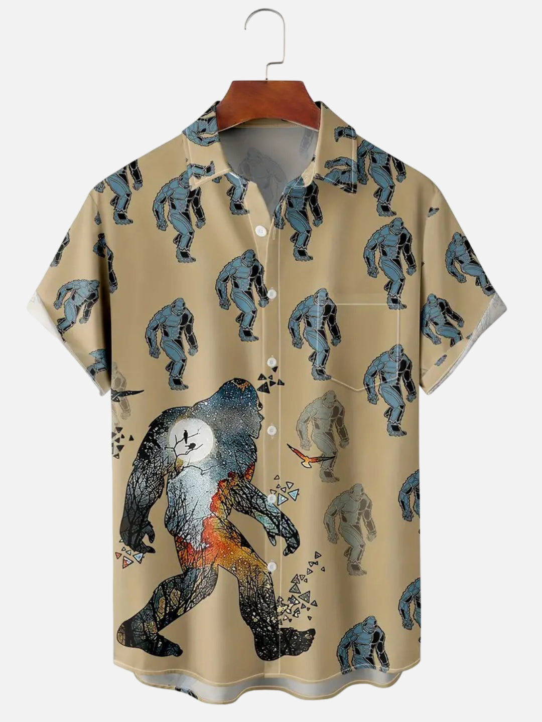 Men's Bigfoot Print Hawaiian Casual Short Sleeve Shirt