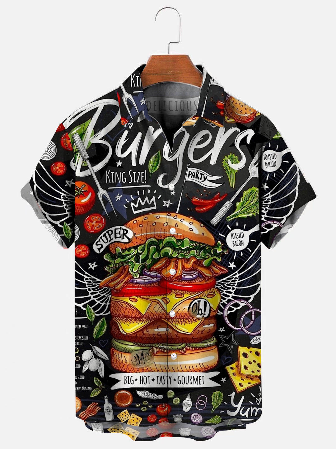 Men's Burger Print Hawaiian Short Sleeve Shirt