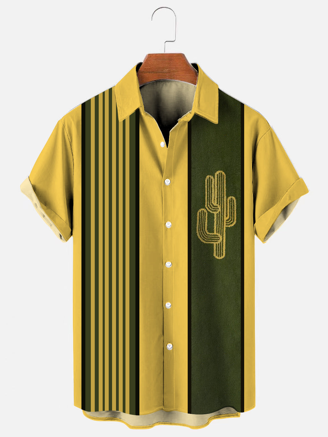 Men's Cactus Cowboy Print Vintage Bowling Shirt