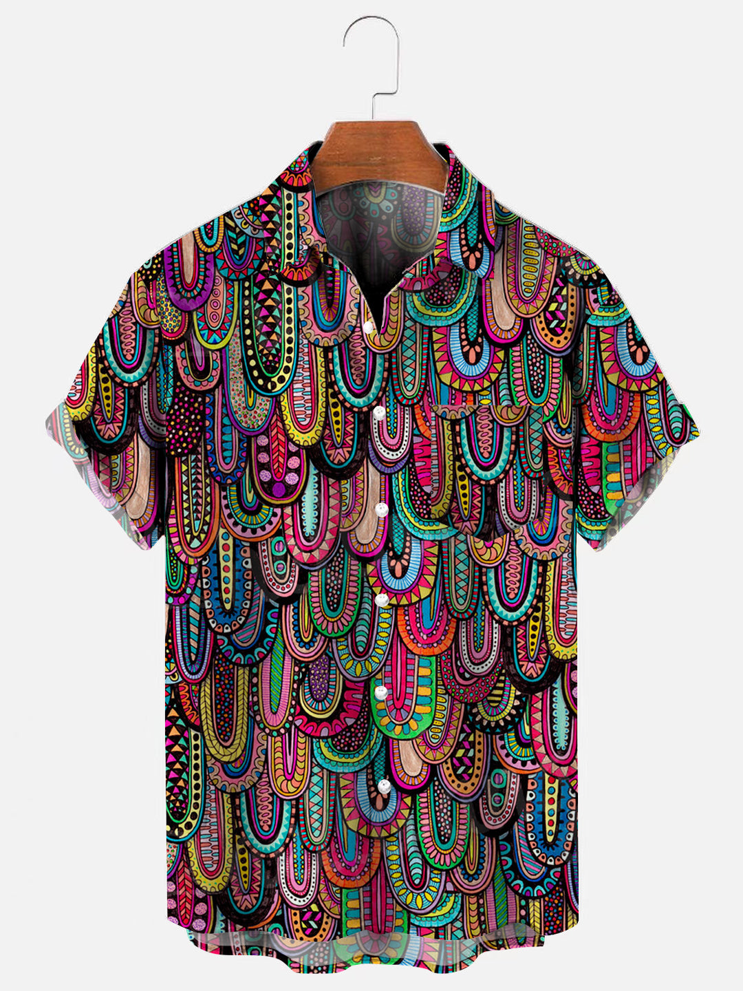 Men's Casual Abstract Print Hawaiian Short Sleeve Shirt