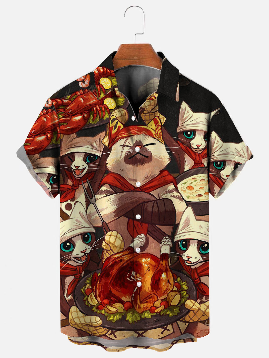 Men's Cat Chef Print Hawaiian Short Sleeve Shirt