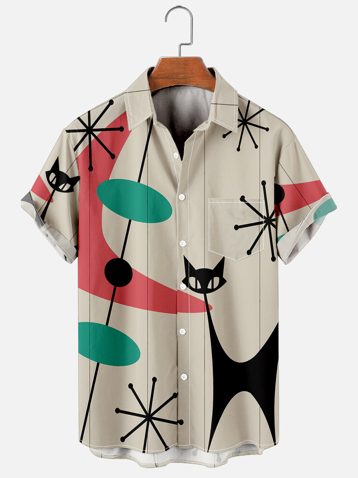 Men's Cat Geometric Printed Casual Vintage Shirts & Tops