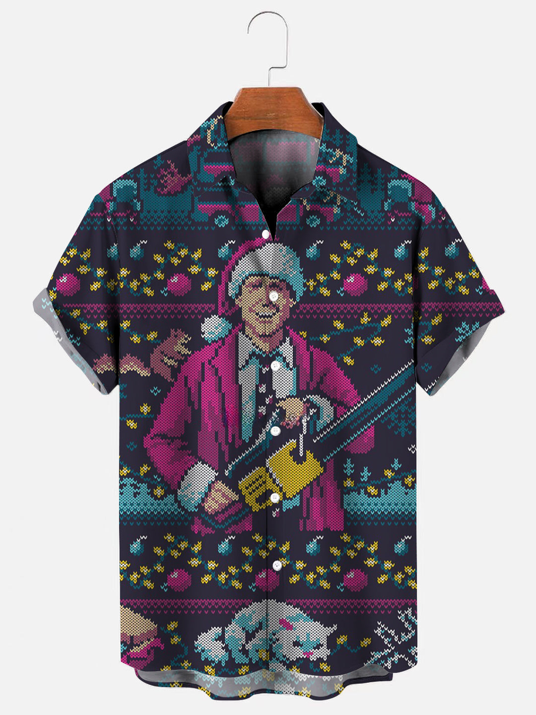 Men's Christmas Print Casual Short Sleeve Shirt