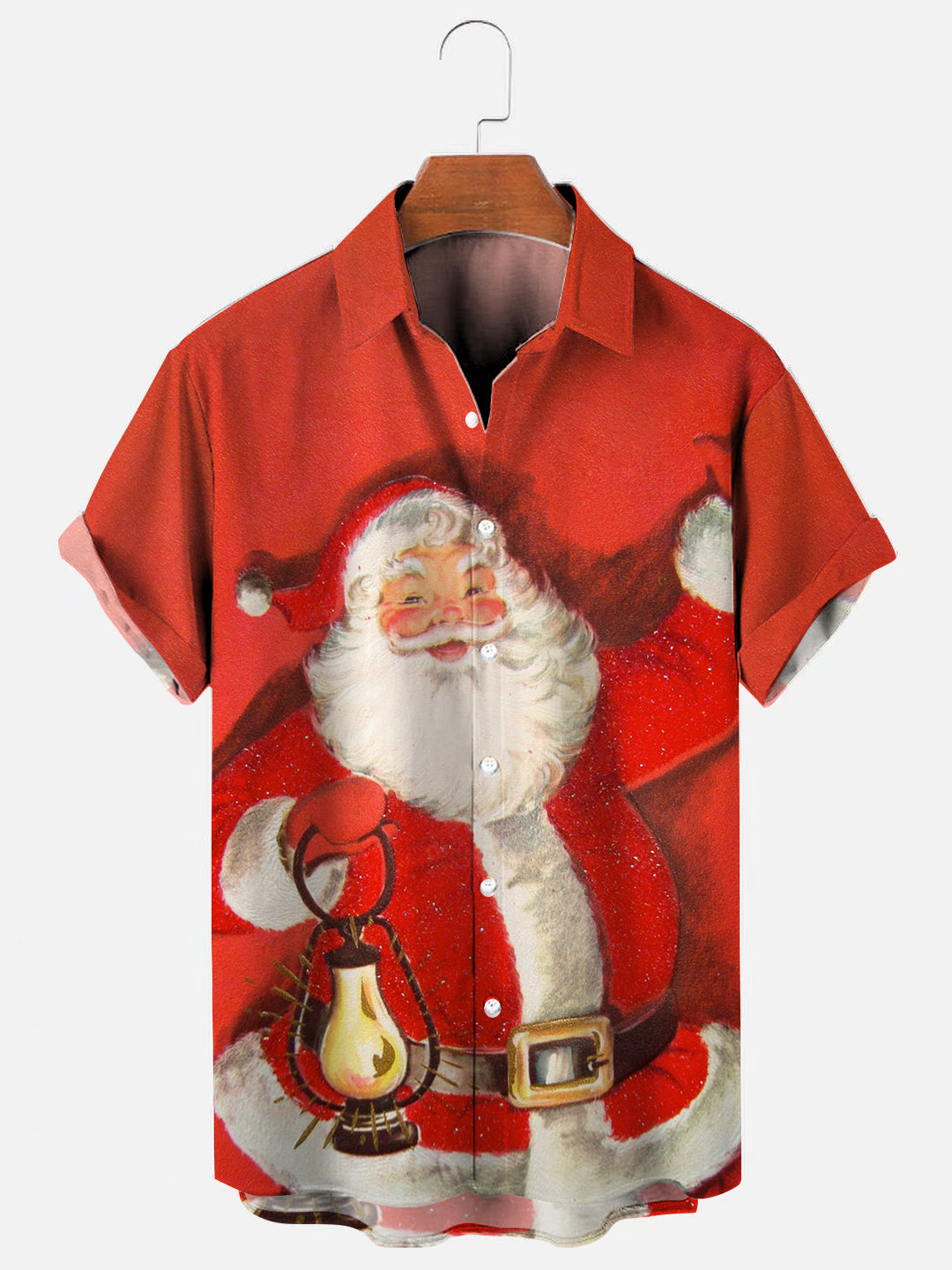 Men's Christmas Santa Print Hawaiian Holiday Short Sleeve Shirt