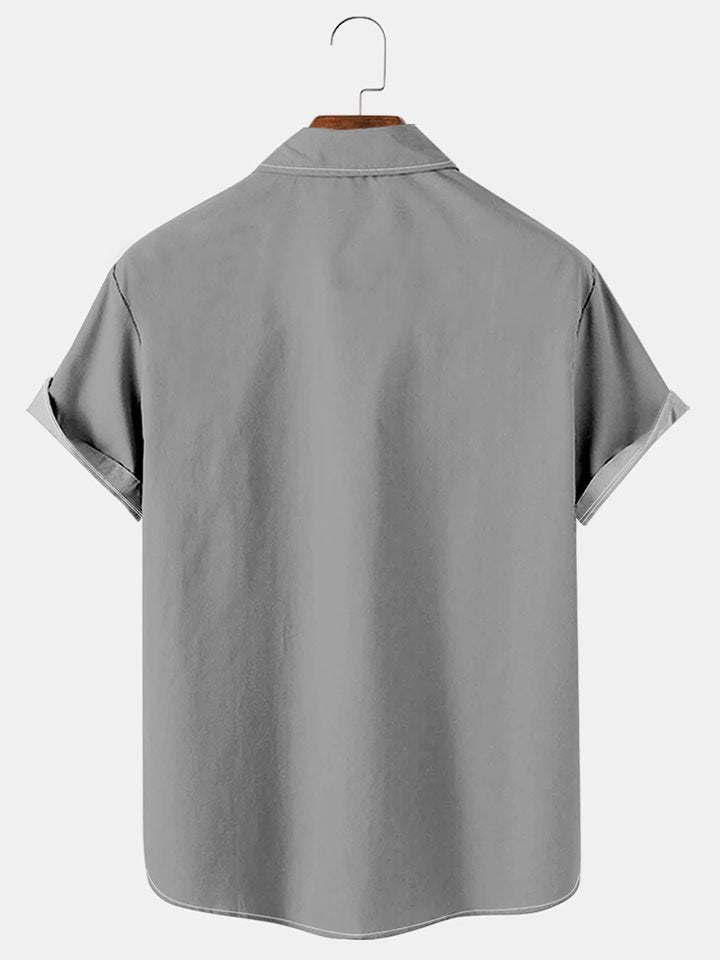 Mens Coconut Print Lapel Loose Short Sleeve Trendy Hawaiian Shirt