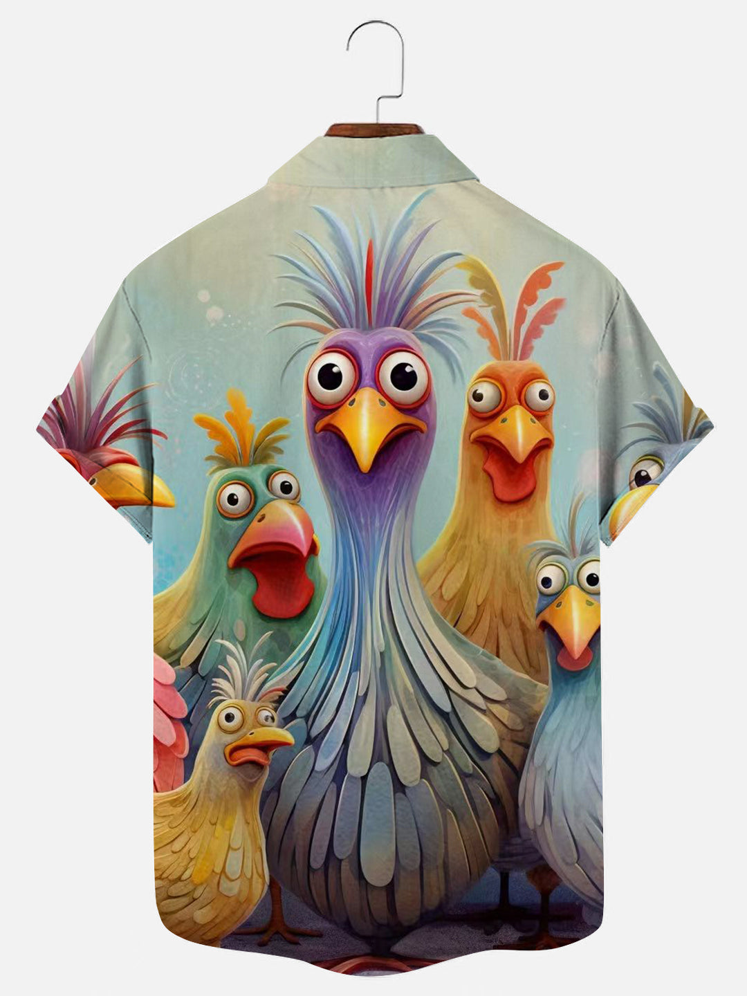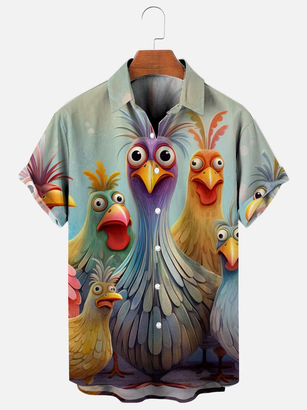 Men's Colorful Chicken Graphic Print Hawaiian Short Sleeve Shirt