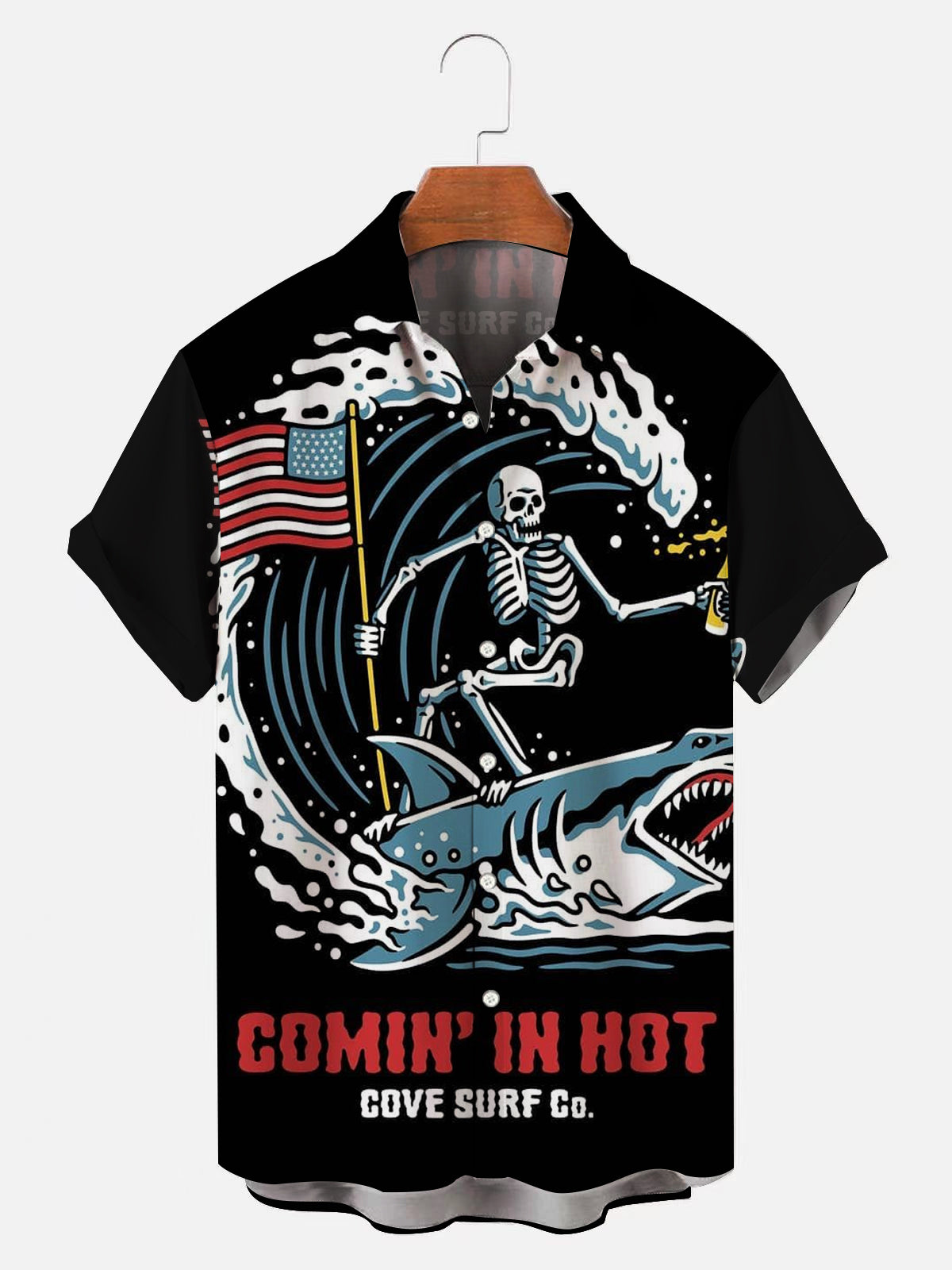 Men's Comin' In Hot Skull Shark Hawaiian Shirt