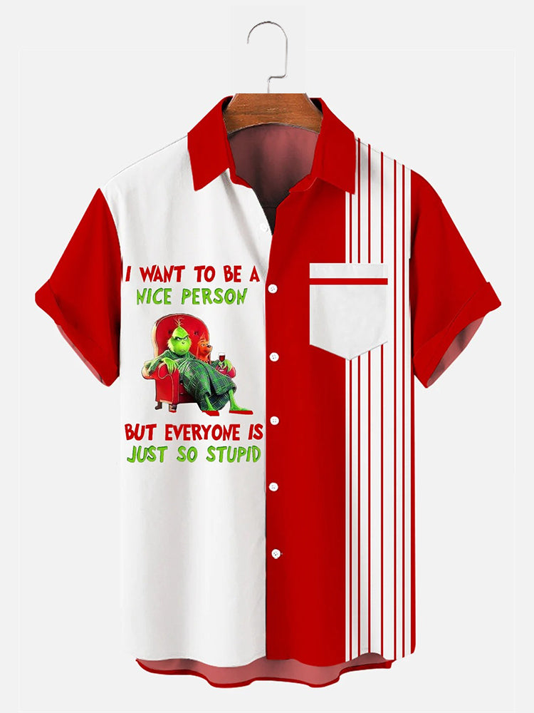 Men's Contrast Striped Christmas Grinch Print Shirt