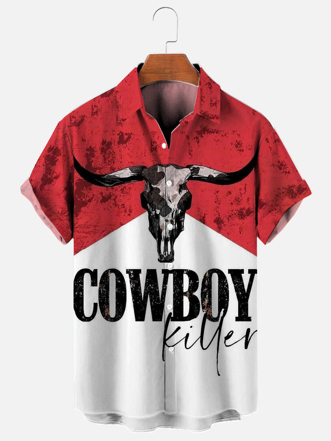 Men's Cowboy Killer Vintage Bull Pattern Casual Short Sleeve Shirt