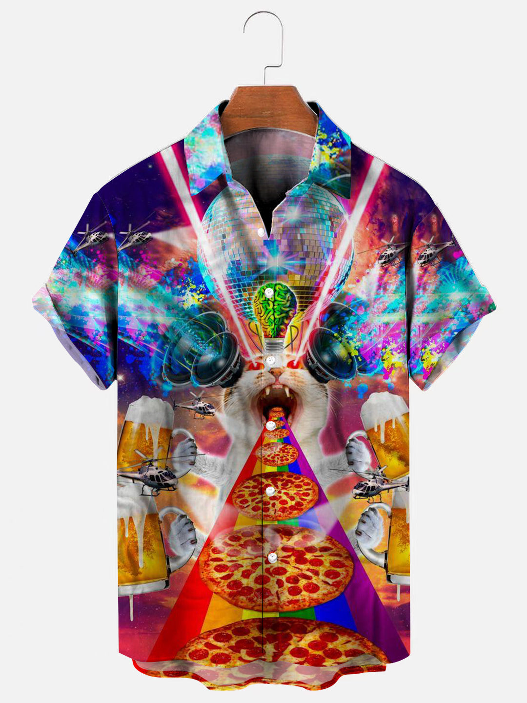 Men's Crazy Cat Print Hawaiian Short Sleeve Shirt