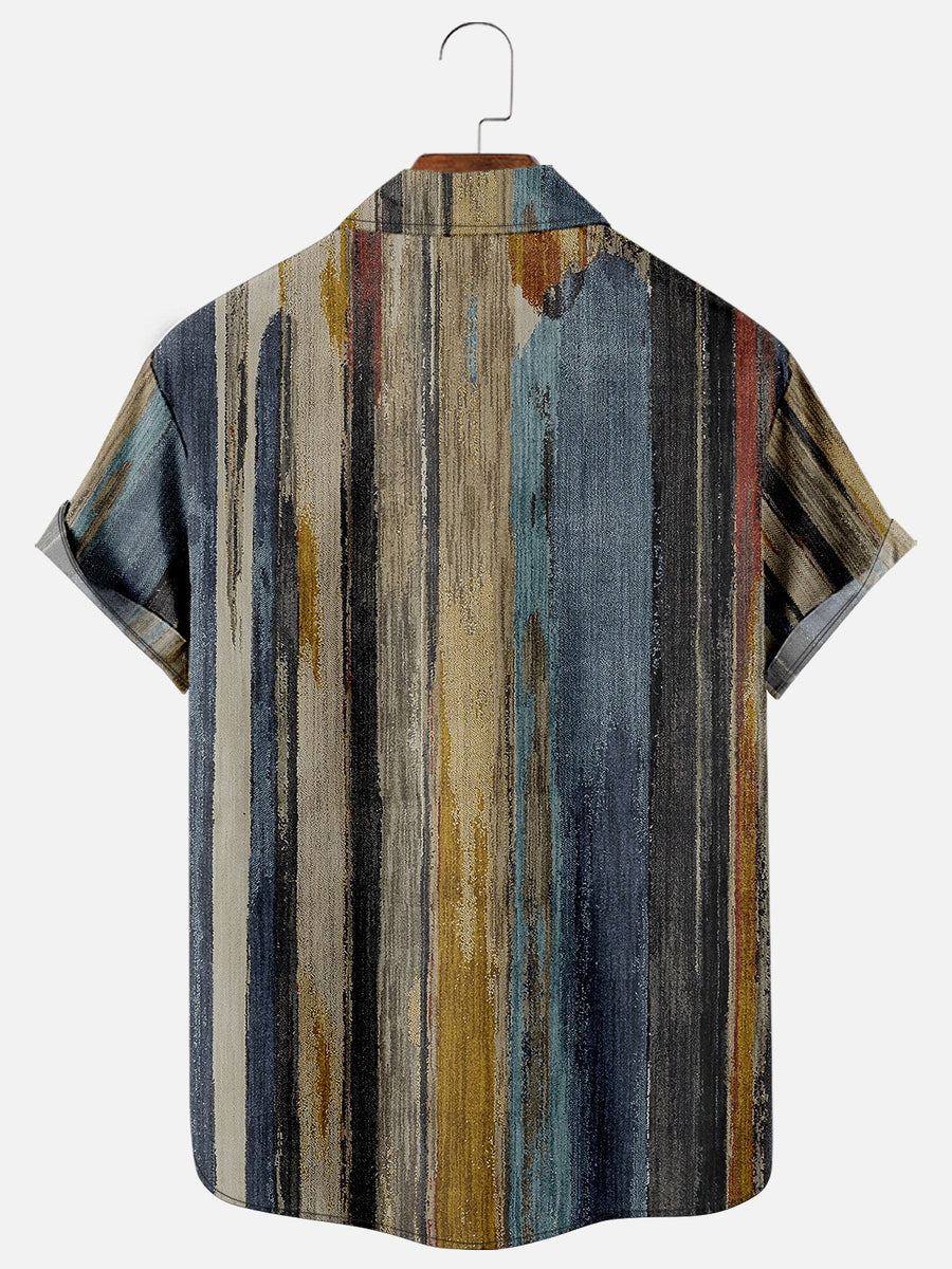 Leisure Vacation Abstract Gradient Geometric Pattern Hawaiian Style Printed Shirt Top