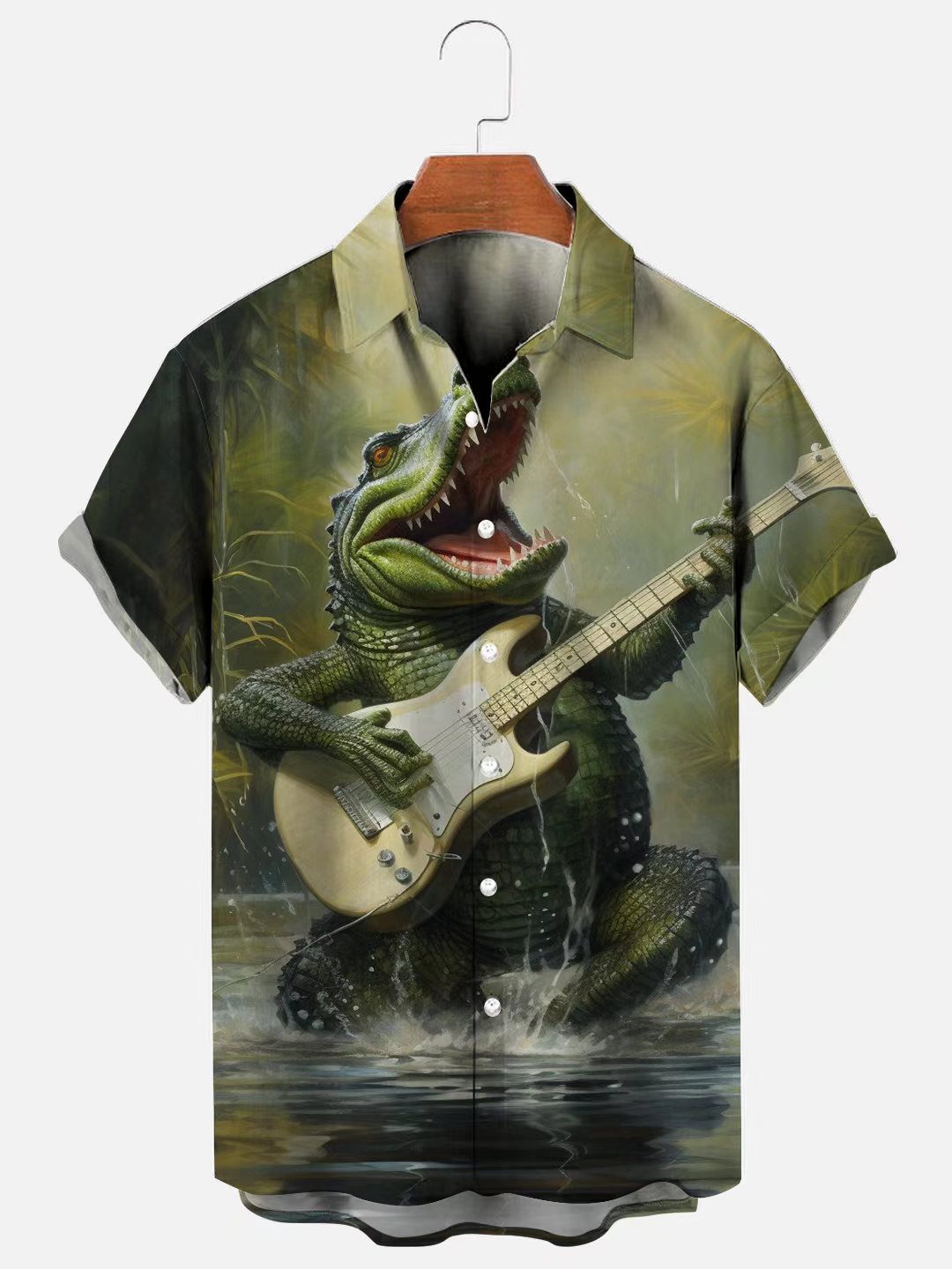Men's Croc Rock Print Hawaiian Short Sleeve Shirt