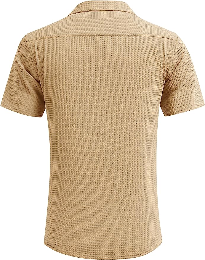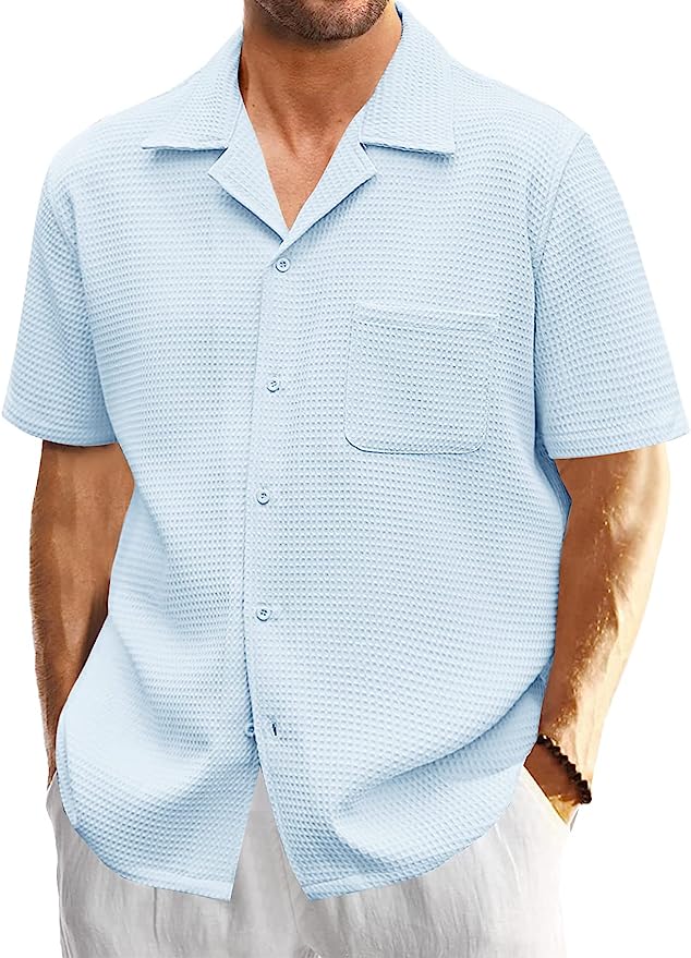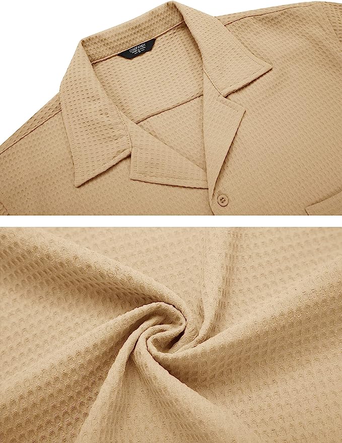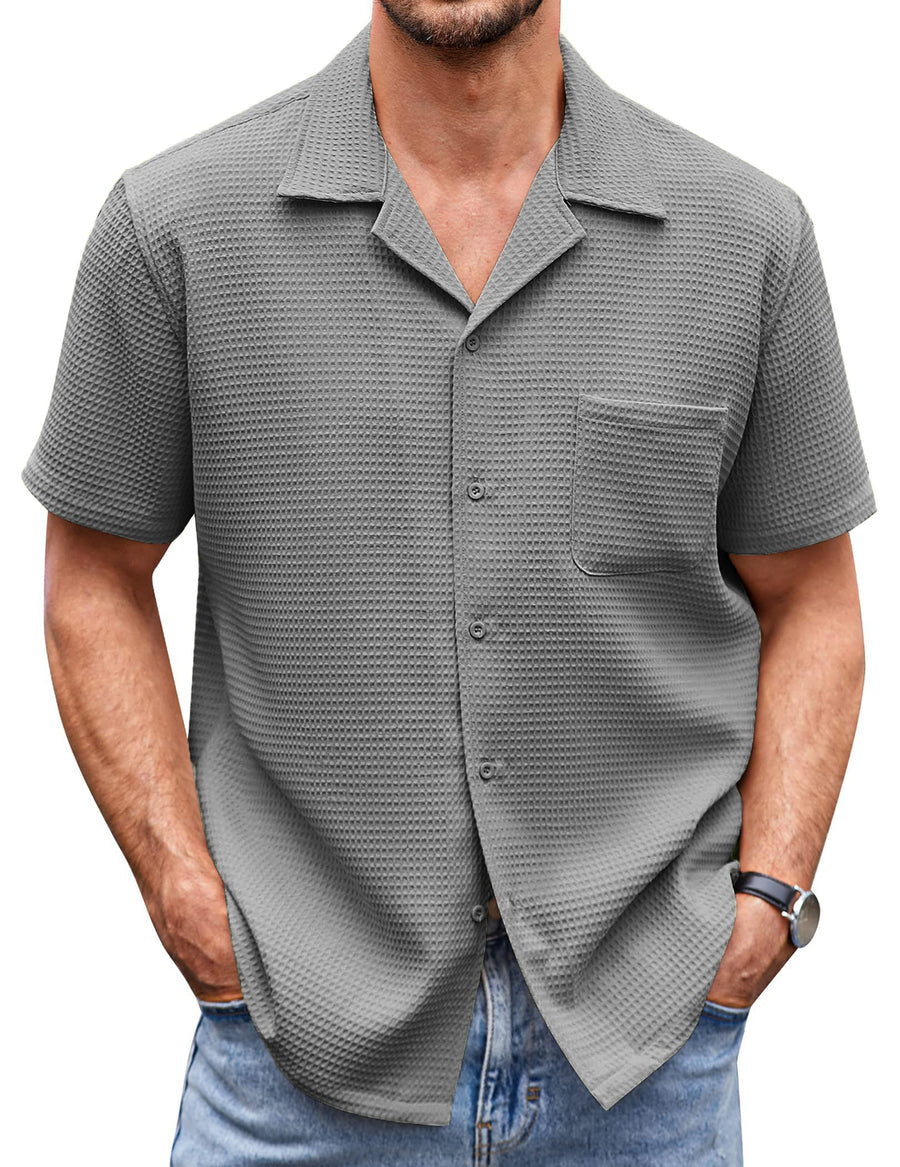 Men's Cuban Collar Pocket Waffle Basic Simple Everyday Casual Shirt