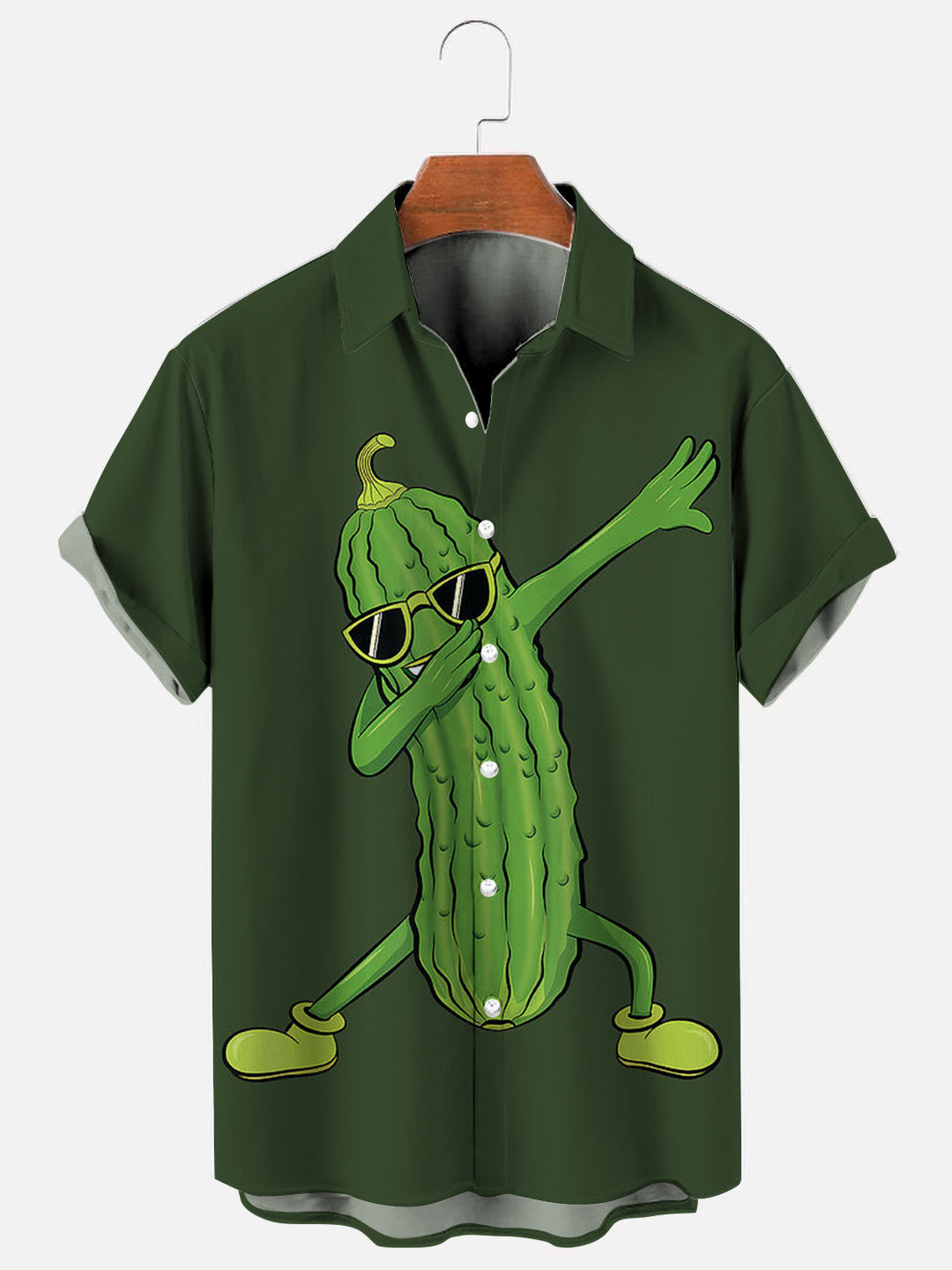 Men's Dancing Cucumber Cartoon Print Hawaiian Short Sleeve Shirt