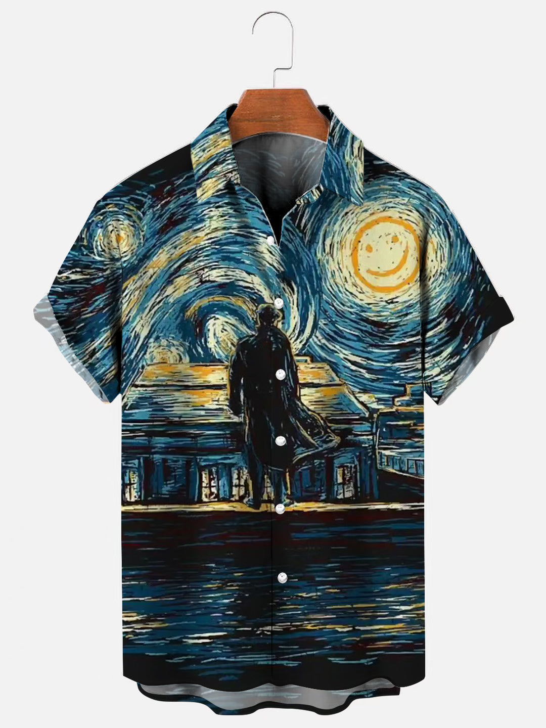 Men's Detective Van Gogh Starry Night Print Short Sleeve Hawaiian Shirt