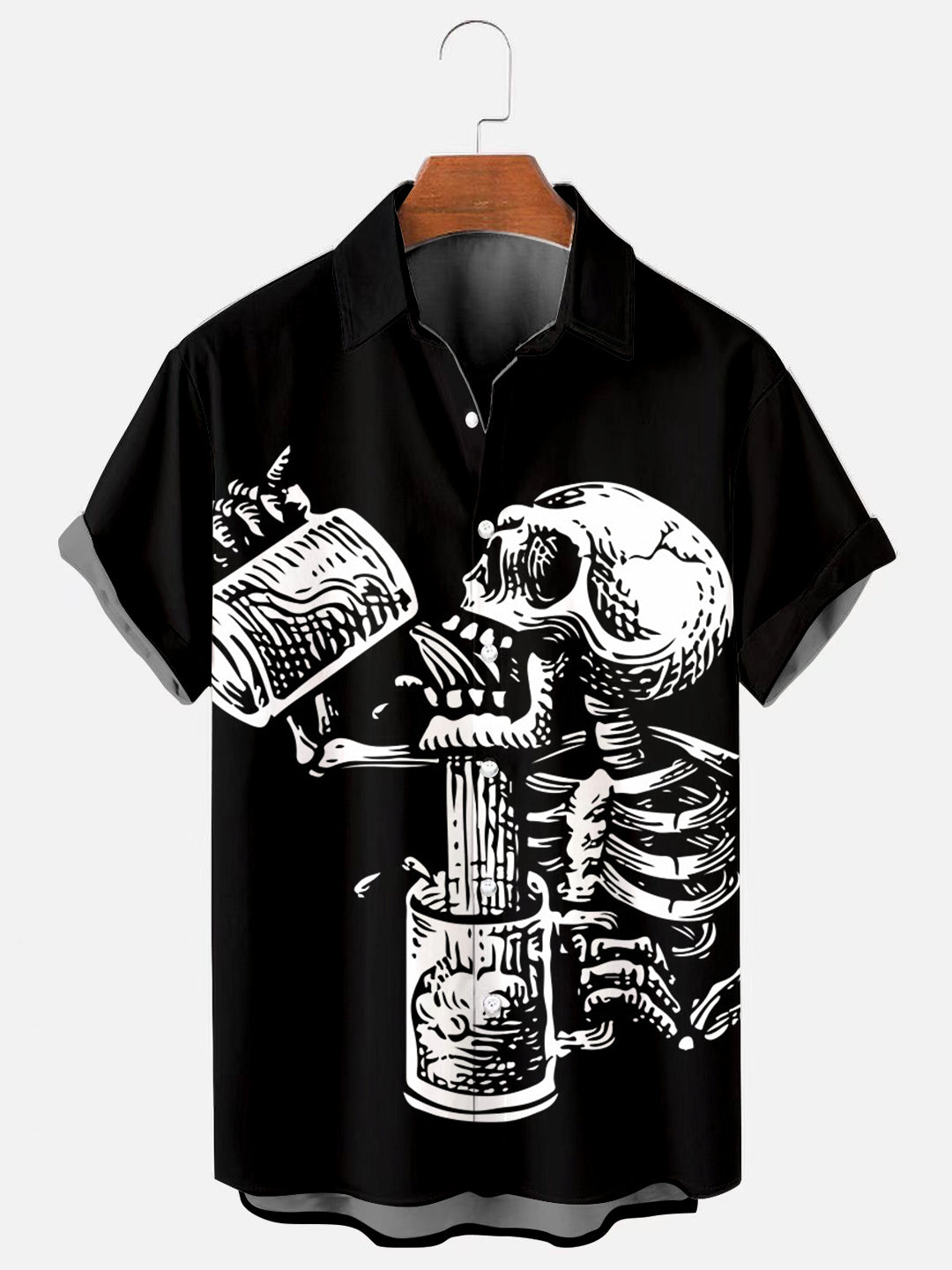Men's Drunken Skull Print Hawaiian Short Sleeve Shirt