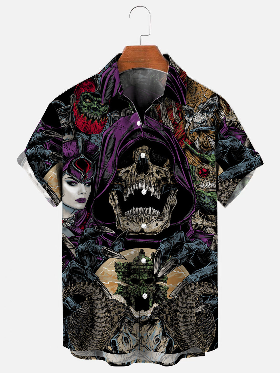 Men's Evil Skull Vintage Poster Print Hawaiian Short Sleeve Shirt