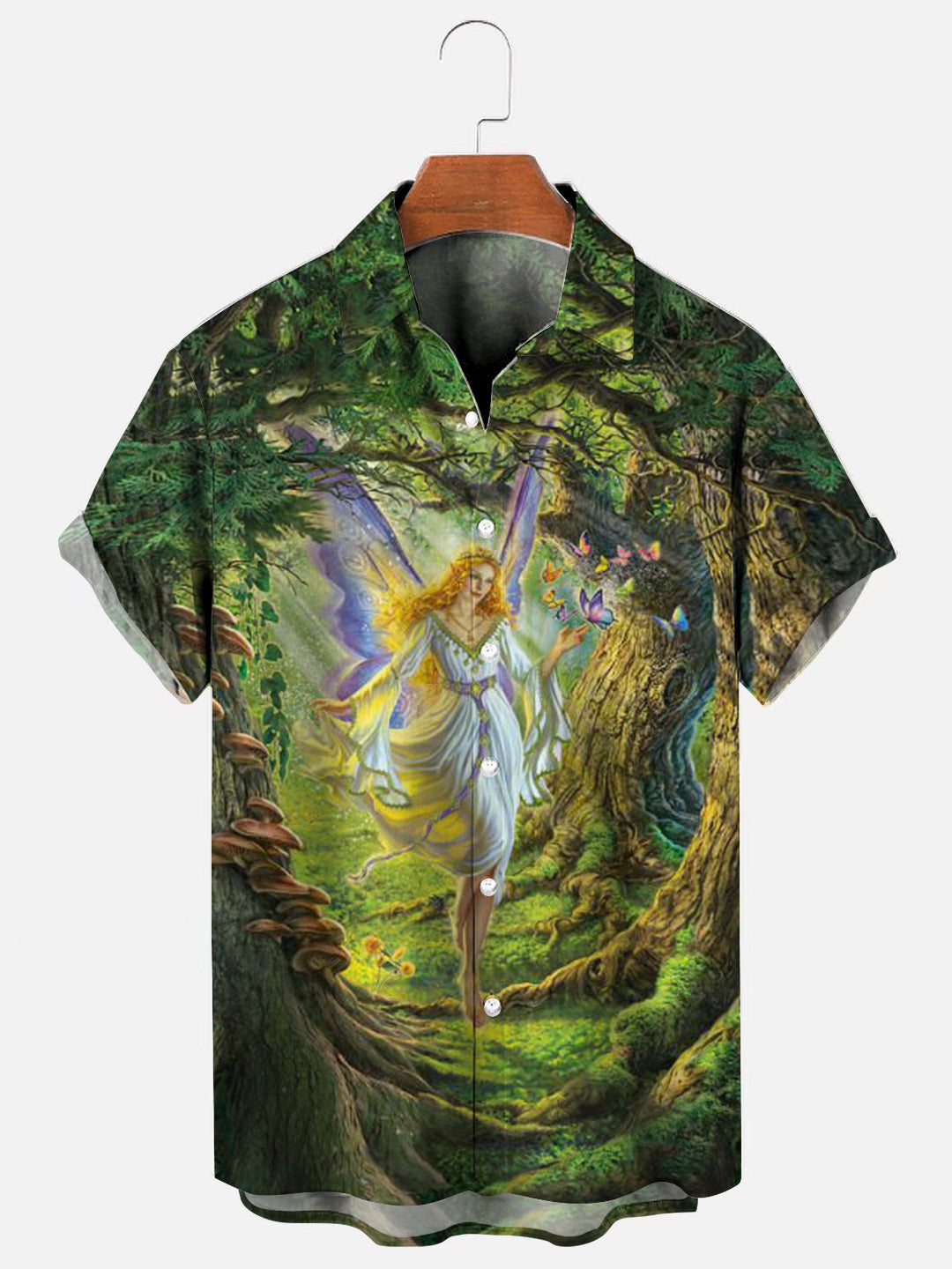 Men's Fairytale Forest Fairy Print Hawaiian Short Sleeve Shirt