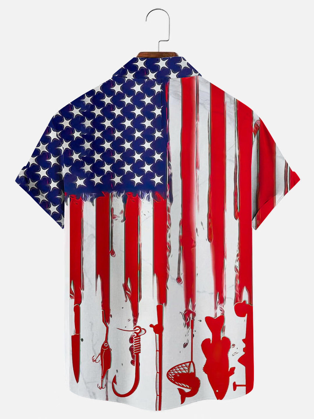 Men's Fishing Flag Print Hawaiian Casual Short Sleeve Shirt
